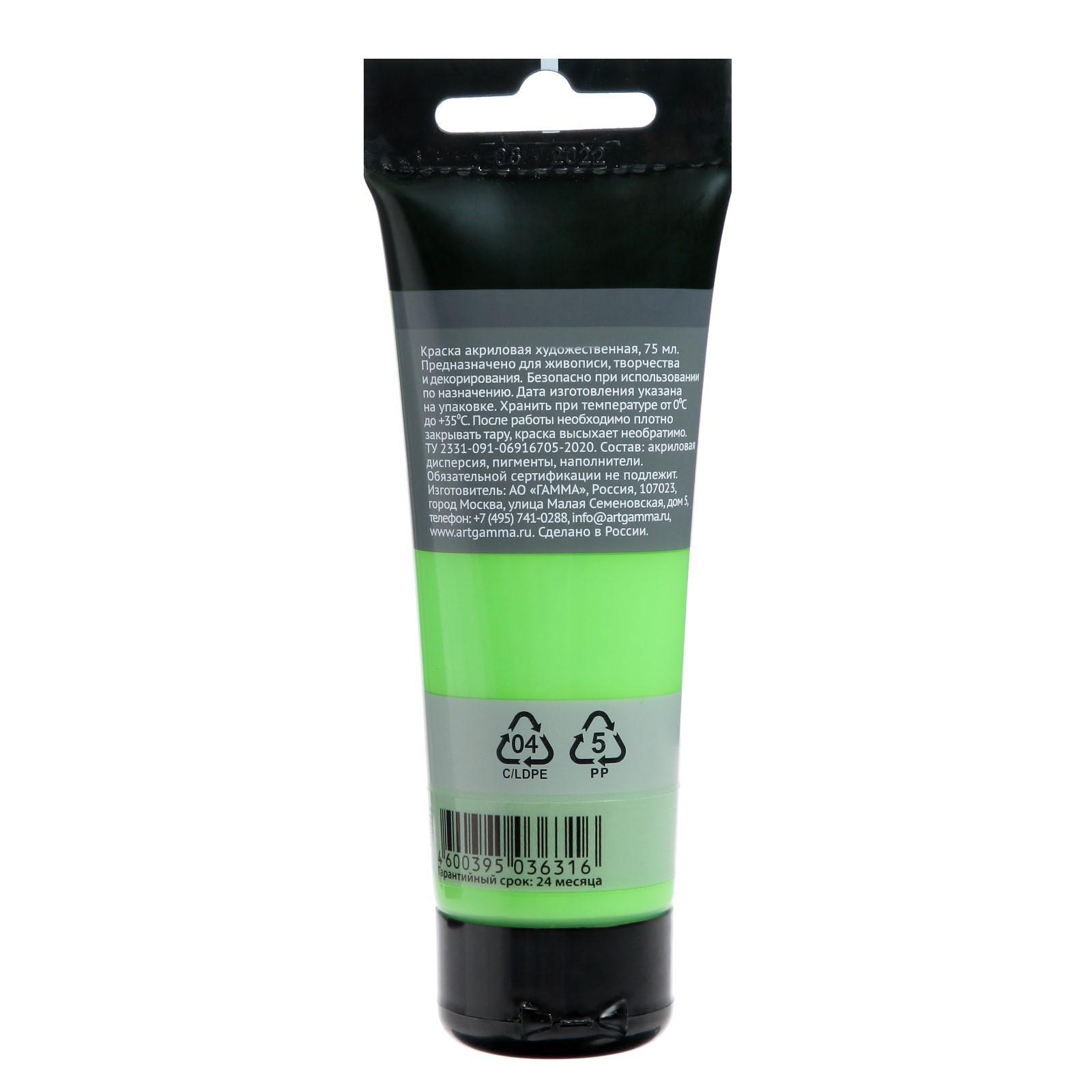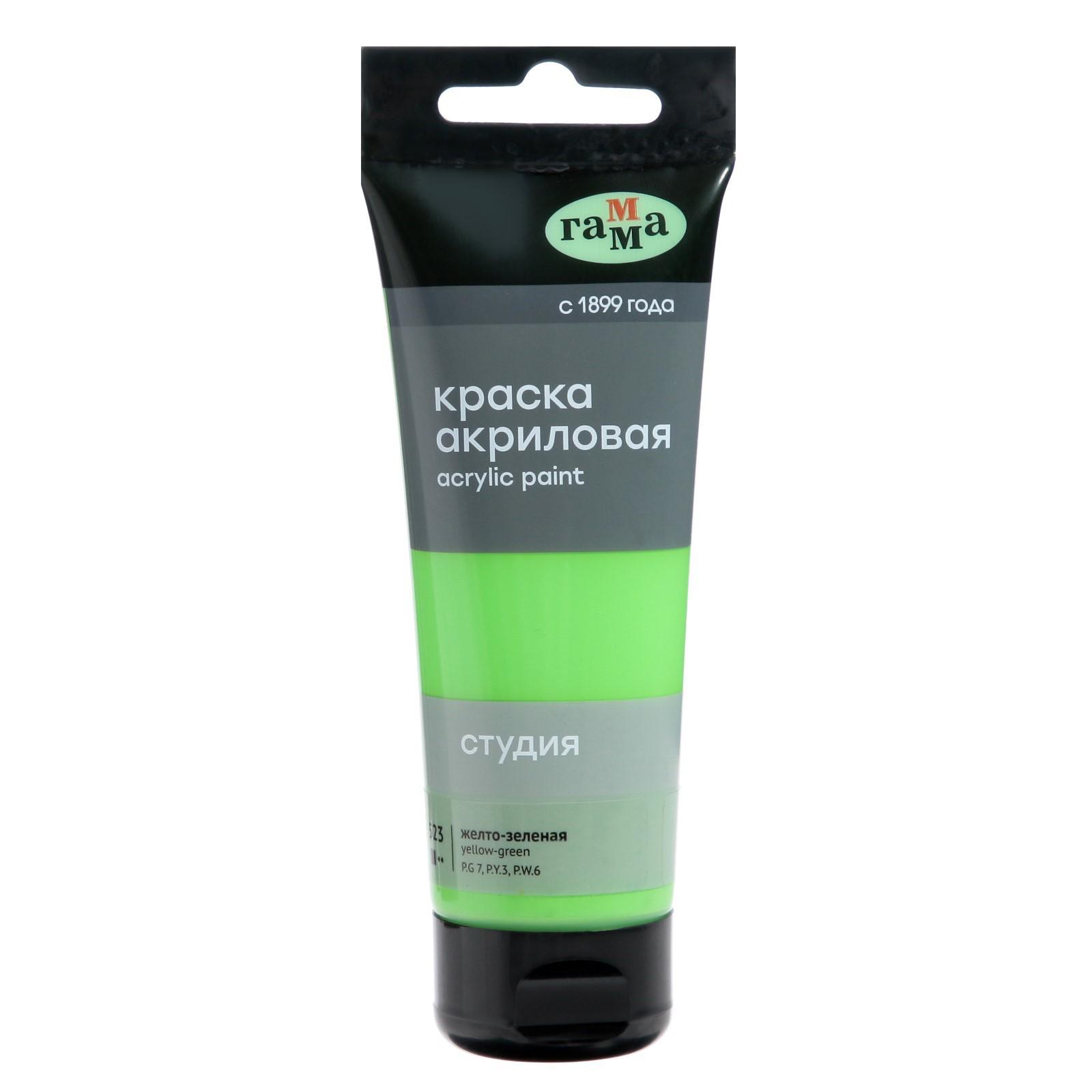Краска акриловая Гамма "Студия", туба, 75 мл, желто-зелёная