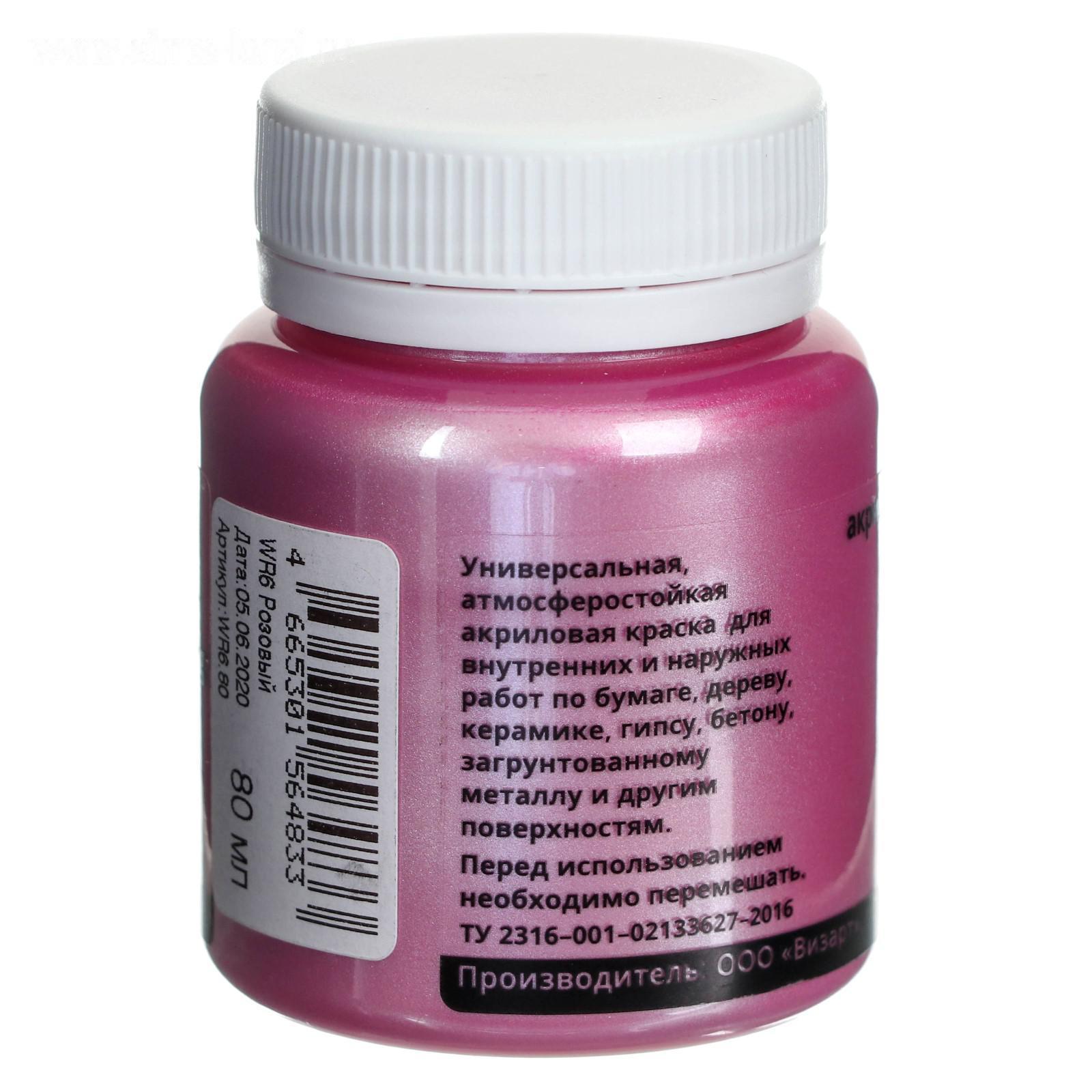 Краска акриловая Pearl, 80 мл, WizzArt, Розовый перламутровый WR6