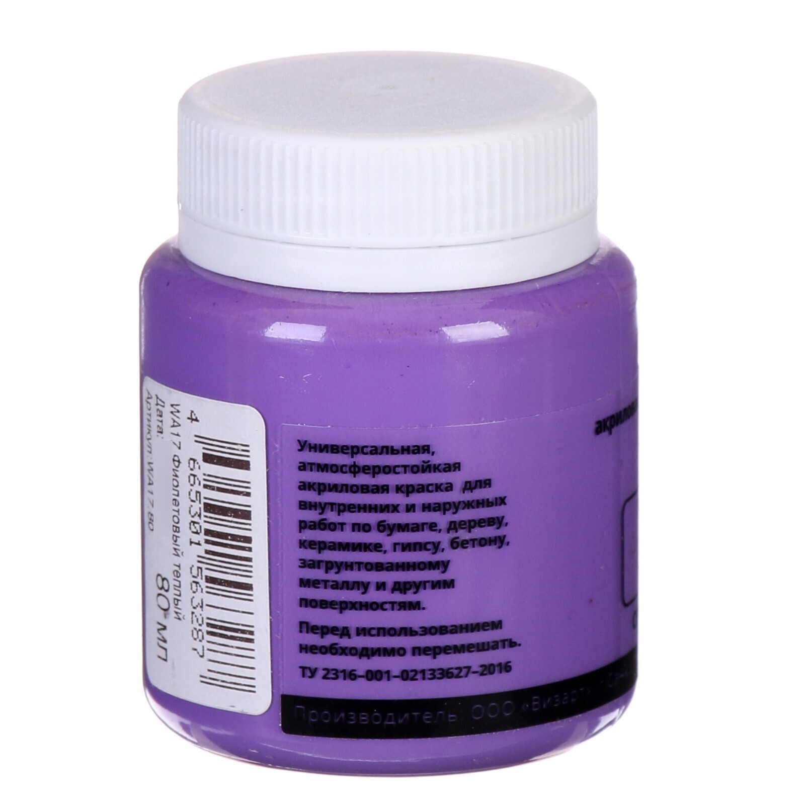 Краска акриловая Pastel 80 мл WizzArt Фиолетовый теплый пастельный WA17.80