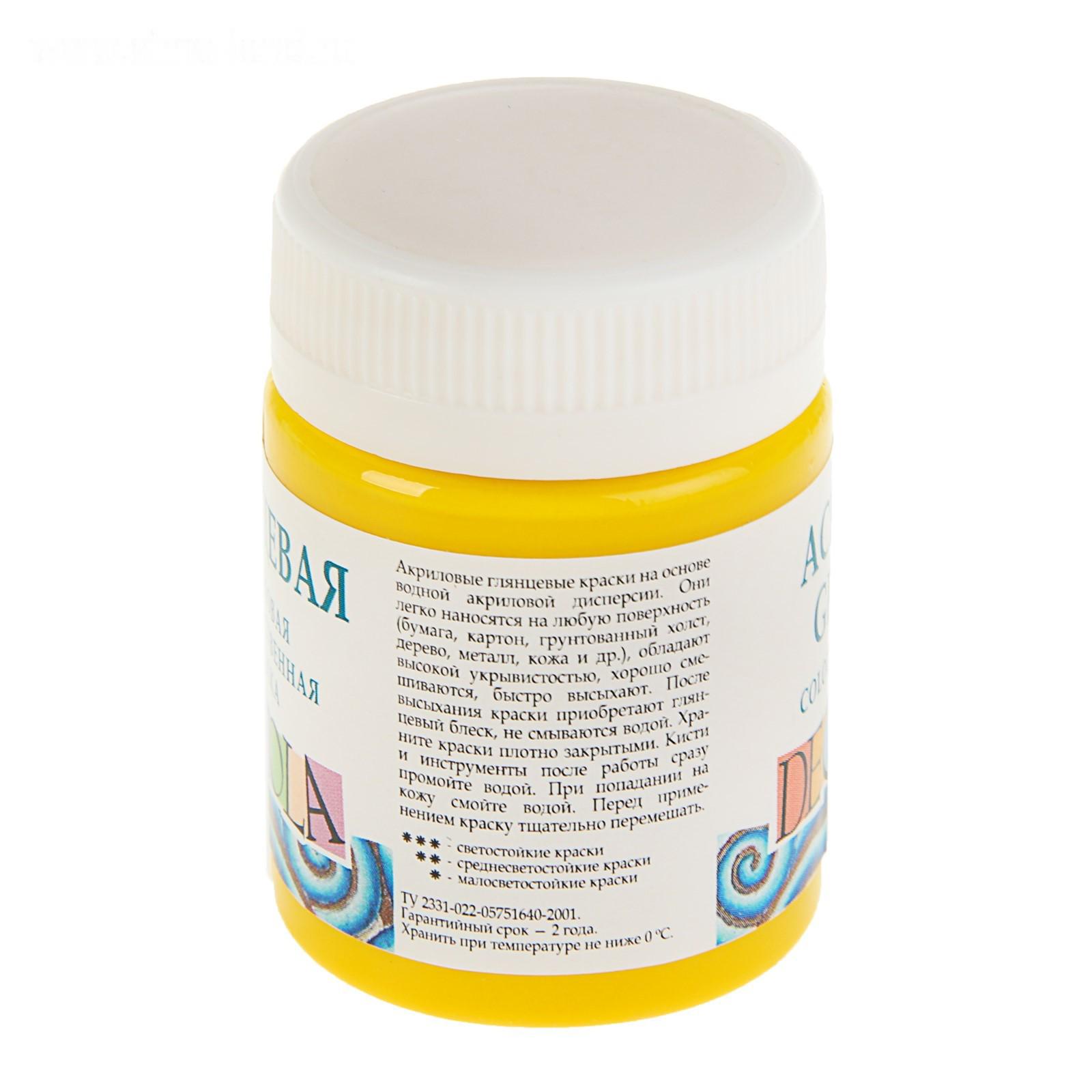 Краска акриловая глянцевая 50 мл, ЗХК Decola, жёлтая светлая, 2928213