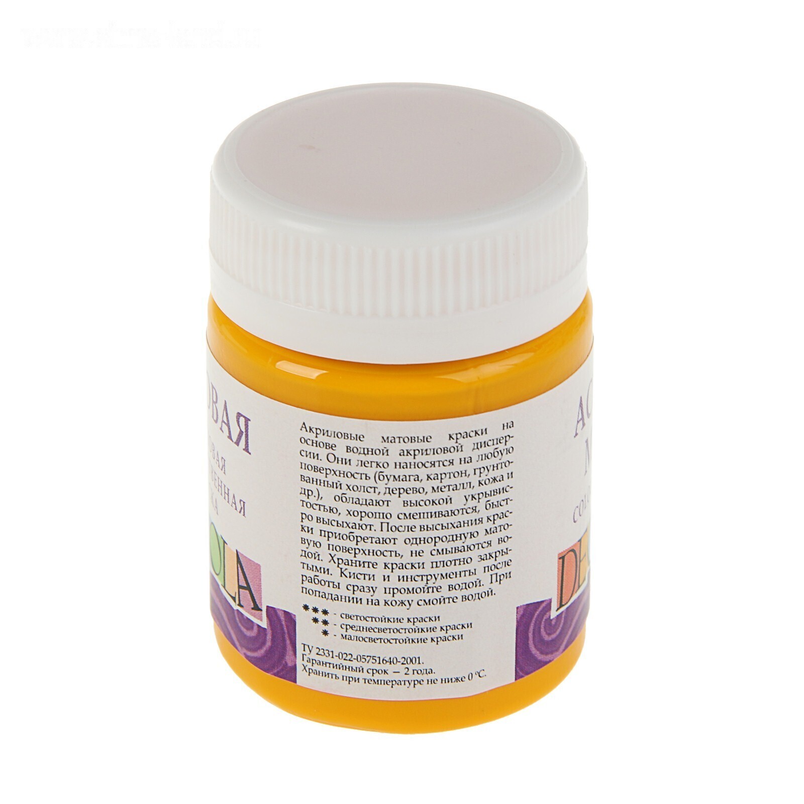Краска акриловая матовая 50 мл, ЗХК Decola, жёлтая средняя, 14328220
