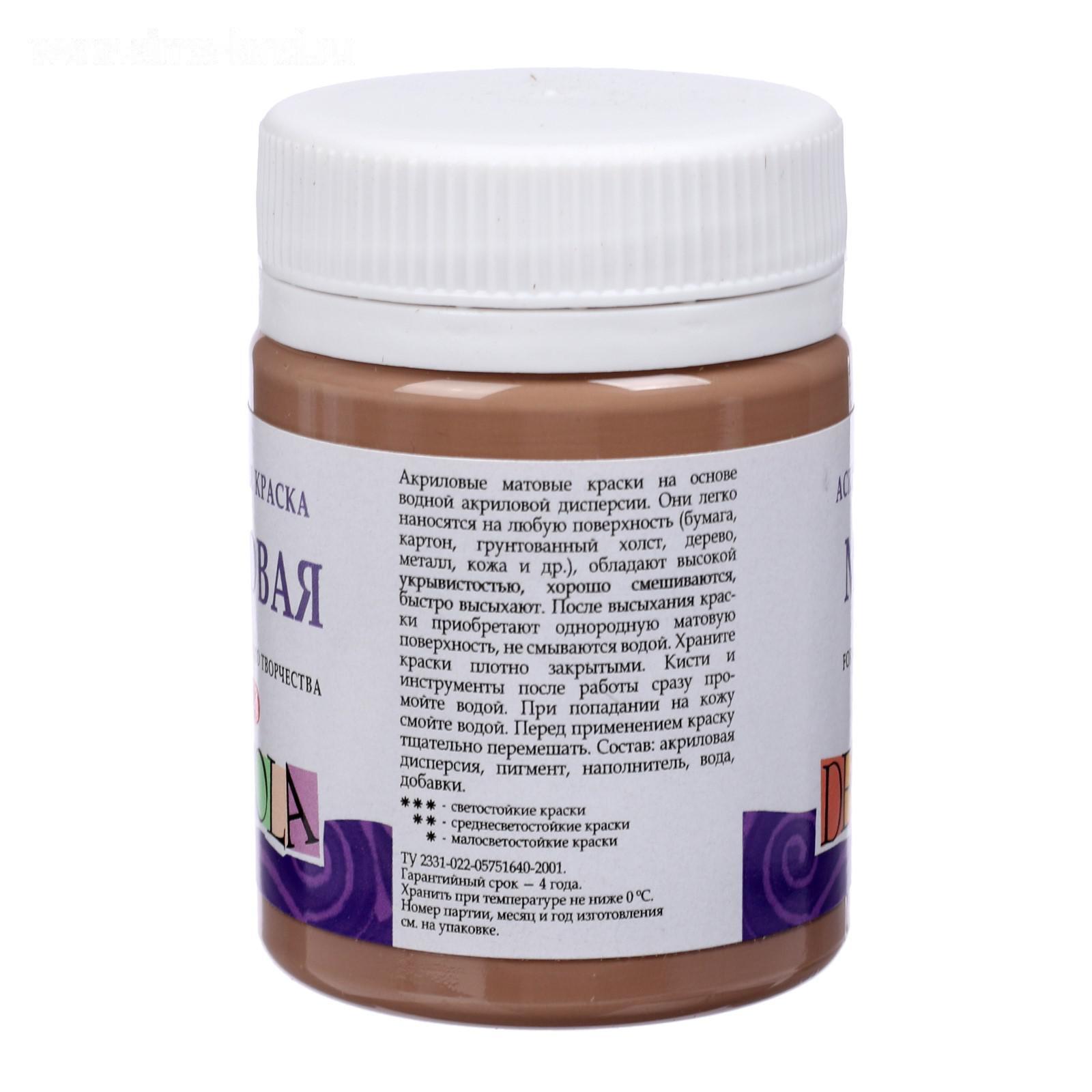 Краска акриловая матовая 50 мл, ЗХК Decola, кофейная, 14328434