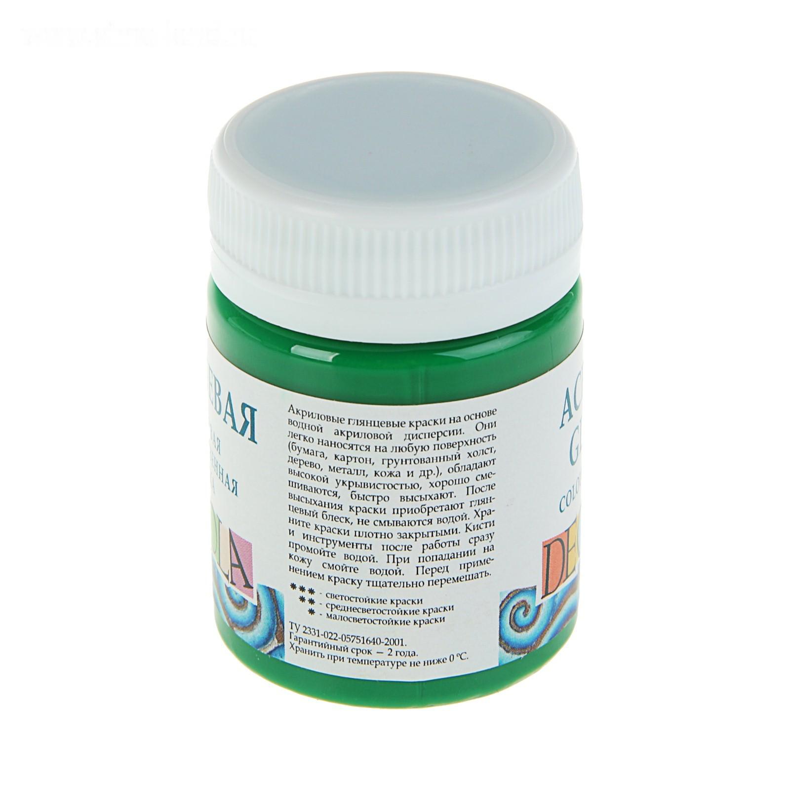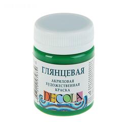 Краска акриловая глянцевая 50 мл, ЗХК Decola, зелёная средняя, 2928722