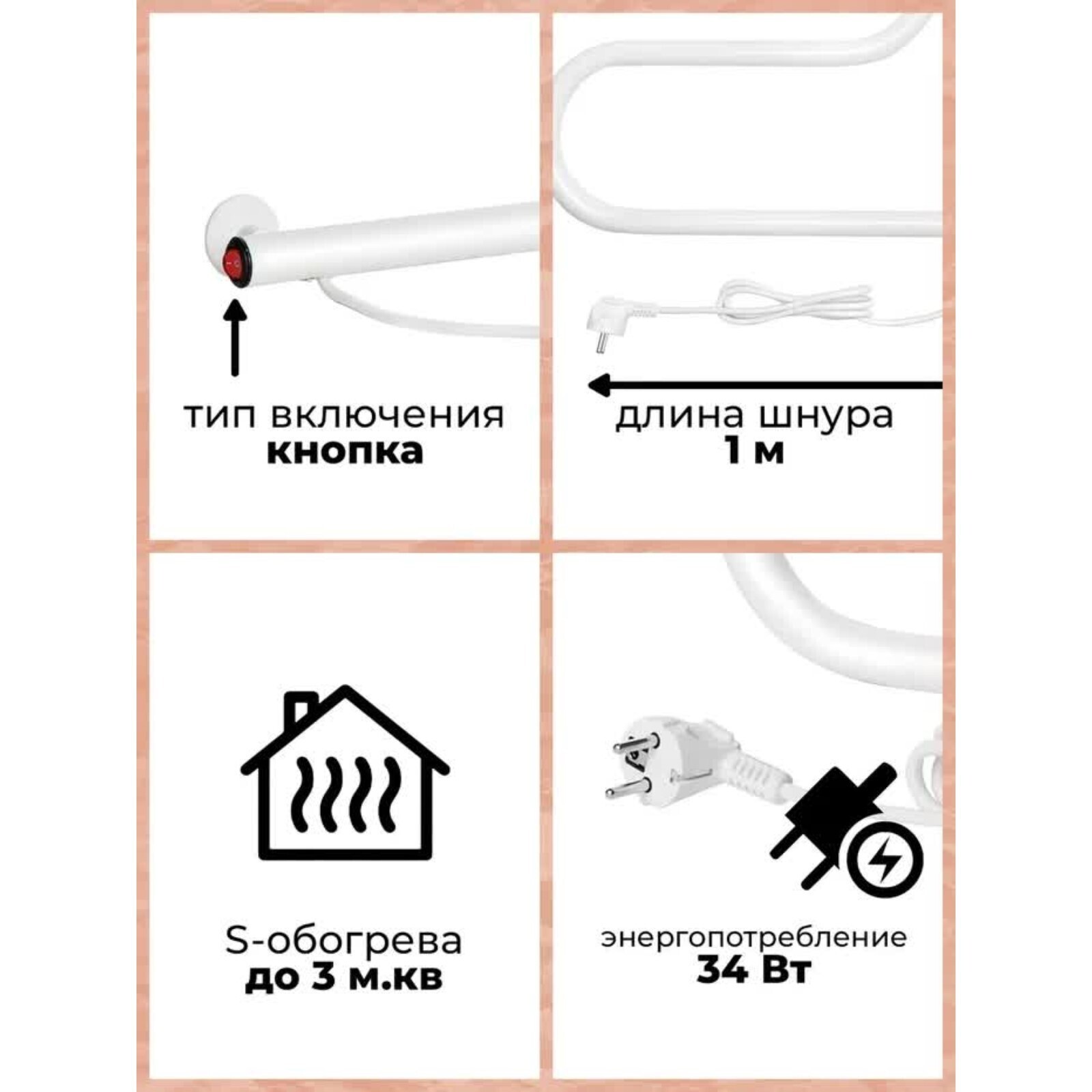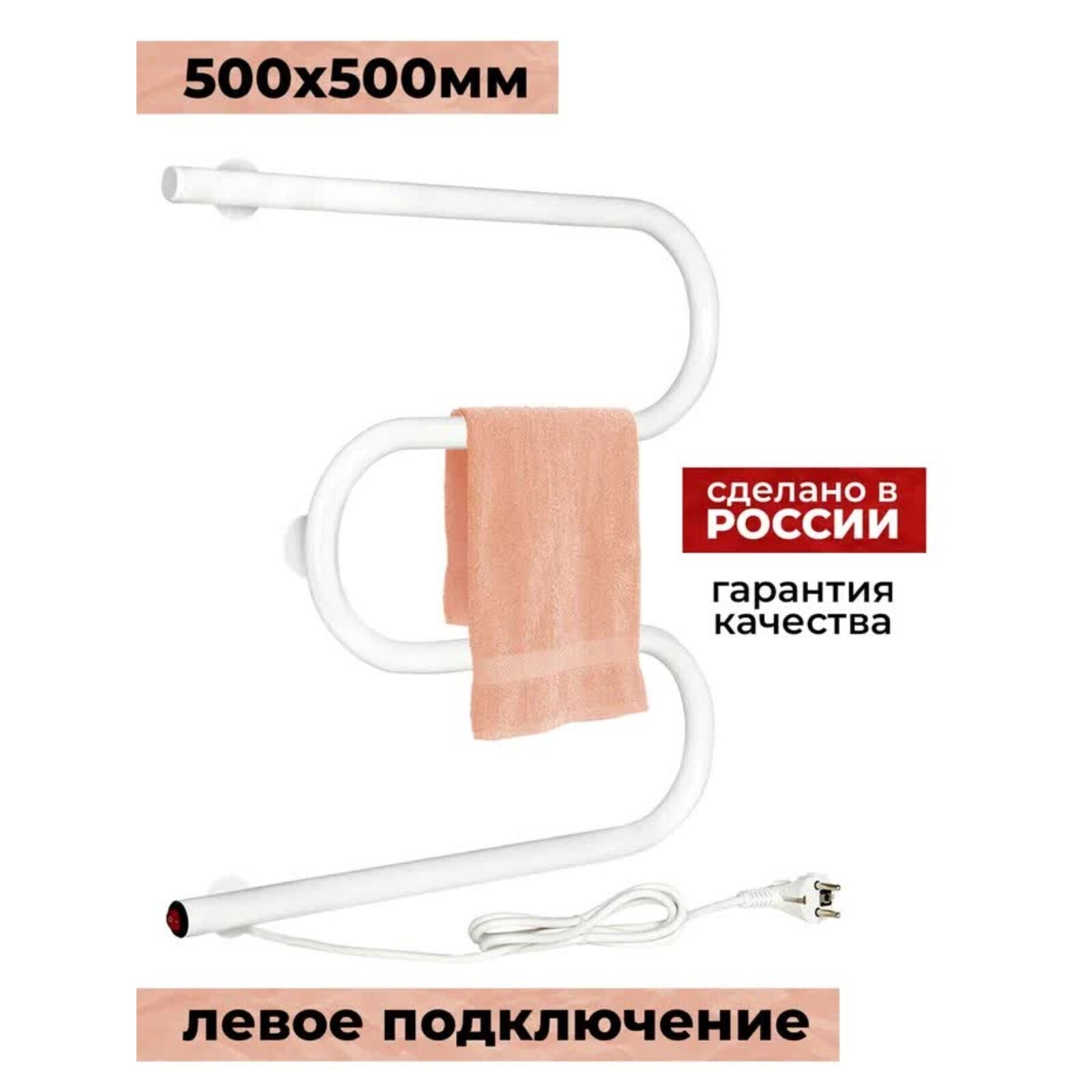 Полотенцесушитель электрический ARIS М-образный, 500х500 мм, левое подключение, белый
