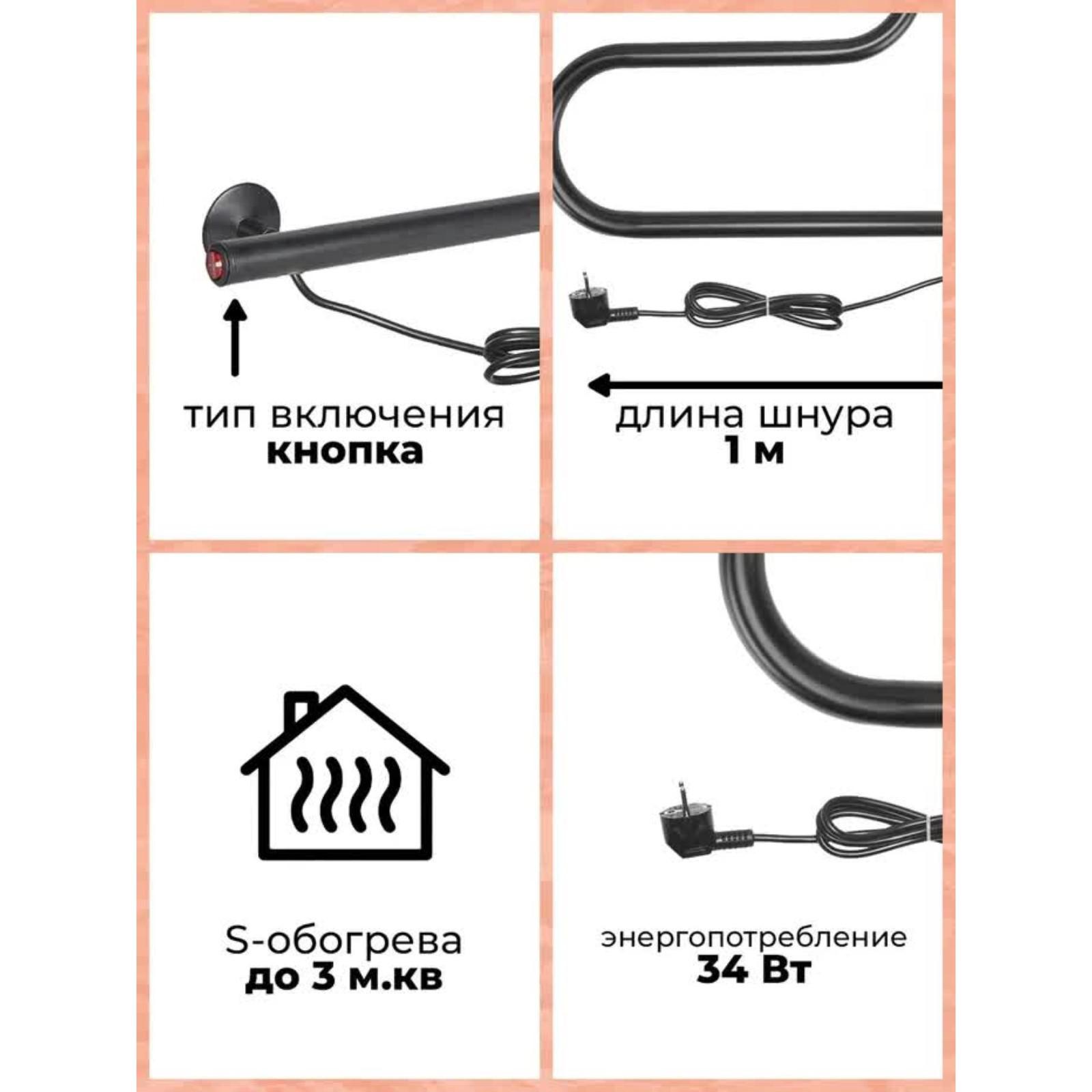 Полотенцесушитель электрический ARIS М-образный, 500х500 мм, левое подключение, черный