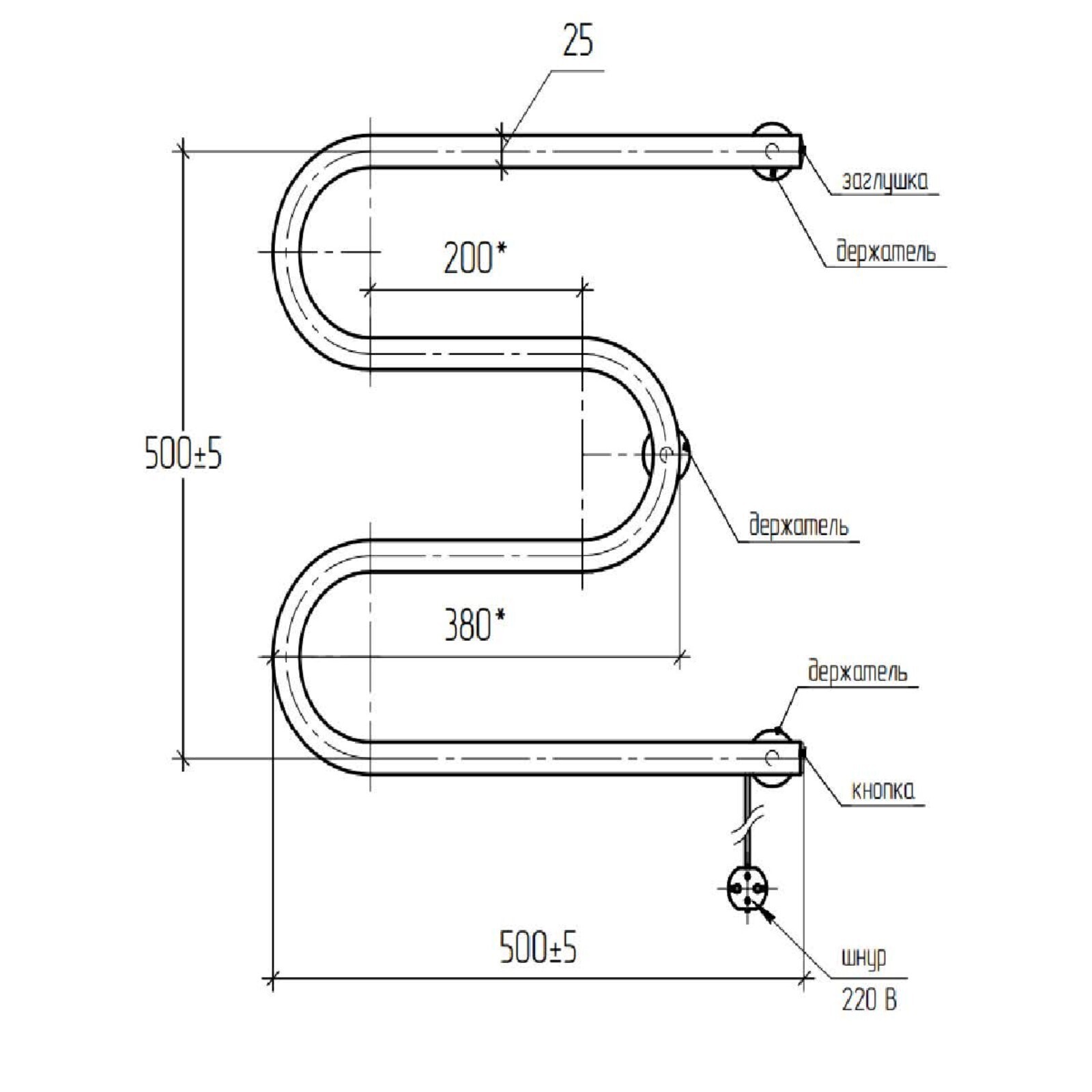 Полотенцесушитель электрический ARIS М-образный, 500х500 мм, правое подключение, черный