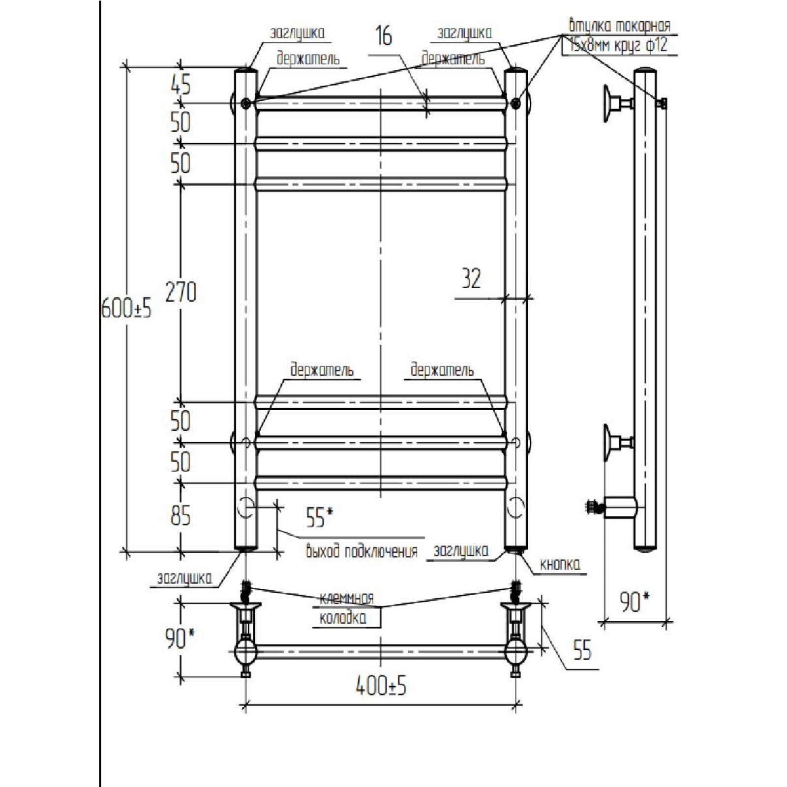 Полотенцесушитель электрический ARIS "Классика", 400х600 мм, 3+3 перекладины, белый