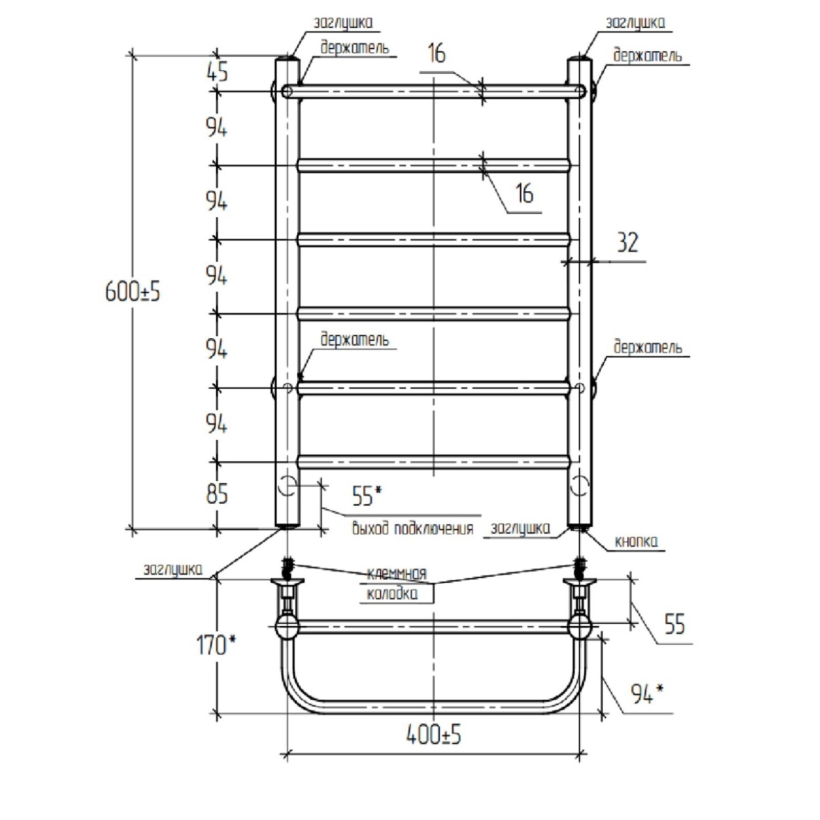 Полотенцесушитель электрический ARIS "Оазис", 400х600 мм, 6 перекладин, белый