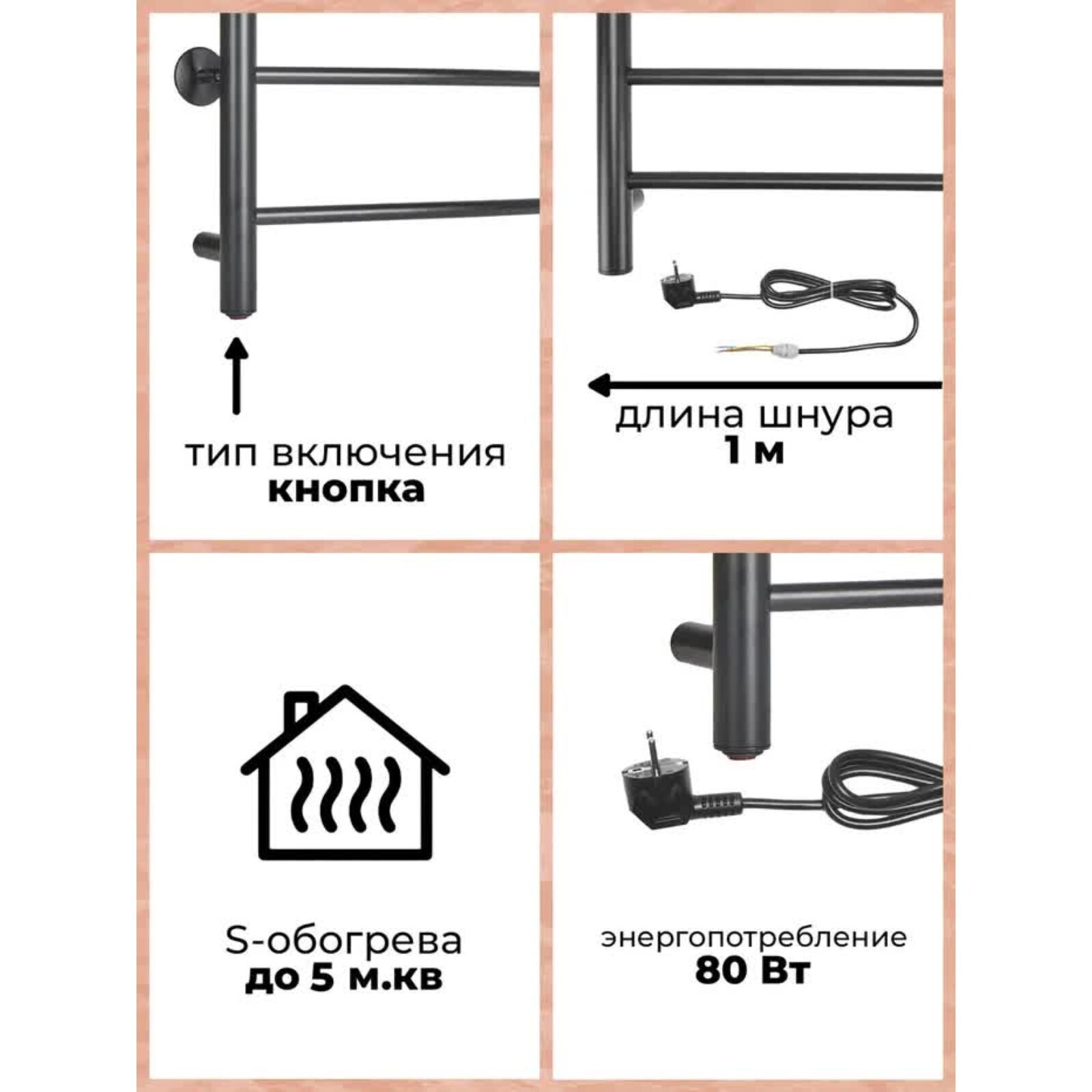 Полотенцесушитель электрический ARIS "Оазис", 400х600 мм, 6 перекладин, черный
