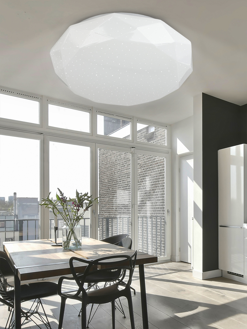 Потолочный светодиодный светильник- SPB-6 Sparkle добавит в Ваш дом неповторимый стиль. Эксклюзивный дизайн в сочетании с практичностью позволяют воплощать в жизнь самые различные идеи. Светодиодная люстра имеет небольшие габариты, что позволит ей гармонично вписаться в пространство любой площади. В совокупности со световой температурой в 4000 К создается приятное белое свечение, защищающее глаза.. Весомым преимуществом является равномерное распределение света и матовое оформление рассеивателя. Благодаря этому Ваши глаза полностью защищены от воздействия прямого света.Электросветильник отличается непростым дизайном. Форма рассеивателя напоминает искру. Это позволит стилизовать пространство потолка под космос: создать эффект звездного неба. Такая LED люстра создаст необычный эффект в детской или спальне. Имеет средний срок службы в 30 000 часов и I класс электробезопасности. Выбирайте качество и стиль, покупайте SPB-6 Sparkle.