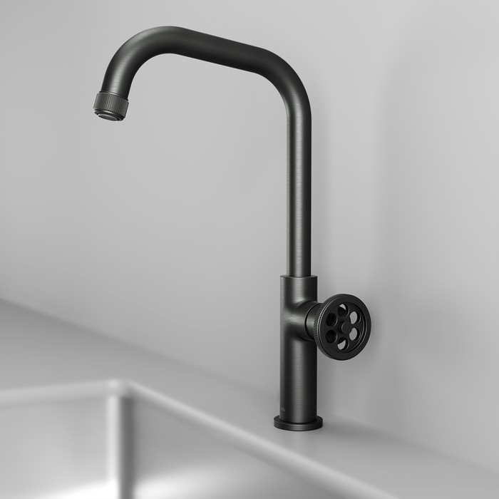 Однозахватный смеситель для кухни Grange в стильном оттенке графит имеет запоминающийся дизайн и яркие, неординарные детали. Круглая дизайнерская ручка красиво, оригинально выглядит и удобно поворачивается даже мыльной рукой. Такой смеситель прекрасно дополнит интерьер в трендовом стиле лофт и может быть установлен как на мойку, так и на столешницу. • Надежный корпус из прочной первичной латуни с пониженным содержанием свинца — стойкий к коррозии, резким изменениям давления и перепадам температуры воды. • Плавный ход ручки и абсолютная точность регулировки температуры и напора воды — за счет качественного керамического картриджа Softap. • Съемный силиконовый аэратор Neoperl® создает мягкий поток воды без разбрызгивания, а за счет встроенного ограничителя потока воды способствует ее экономии. Легко чистится от загрязнений, ржавчины и известковых отложений: достаточно провести по нему пальцем.