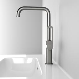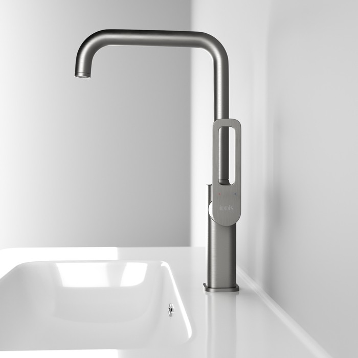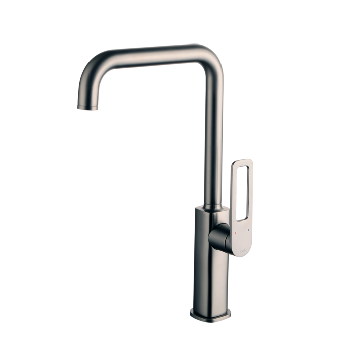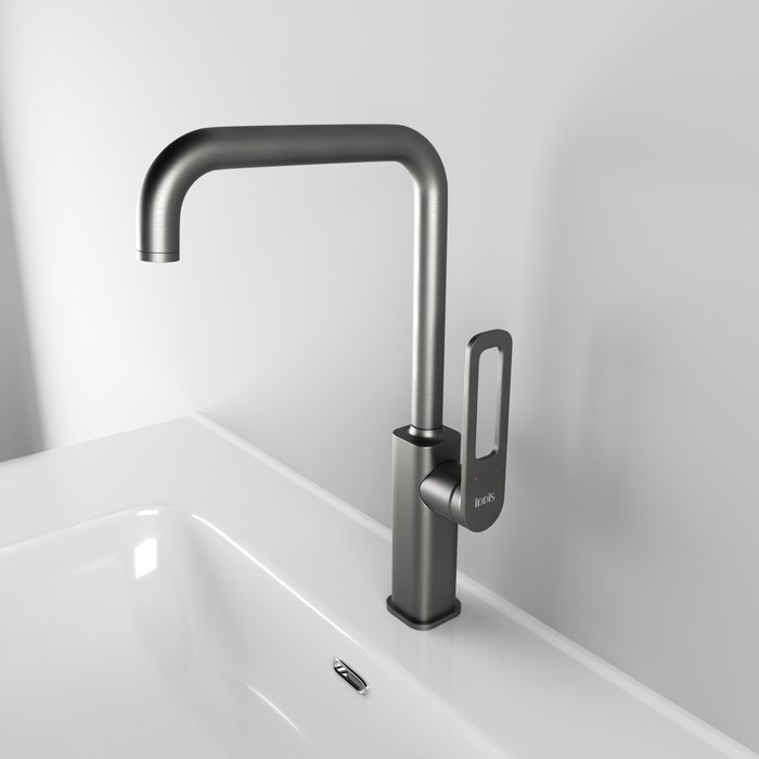 Высокий смеситель для кухни Slide в стильном оттенке графит. Удобная ручка поворачивается на себя, не касаясь стены, что позволит установить смеситель на любом расстоянии от стены. Отверстие-петля на ручке выполняет декоративную и при этом практичную роль — ее легко захватить даже намыленной рукой и отрегулировать напор или температуру. Благодаря высокому изливу смеситель будет удобен в использовании даже с неглубокой мойкой, а за счет высокого основания может использоваться с накладными умывальниками, в том числе, в ванной. • Пластиковый аэратор скрыт в корпусе излива. • Надежный корпус из прочной первичной латуни с пониженным содержанием свинца — стойкий к коррозии, резким изменениям давления и перепадам температуры воды. • Плавный ход ручки и абсолютная точность регулировки температуры и напора воды — за счет качественного керамического картриджа Softap. • Картридж выдерживает максимальную температуру до 95С и гидроудар до 35 атмосфер, прошел тестирование на жизненный цикл по европейскому стандарту EN817.