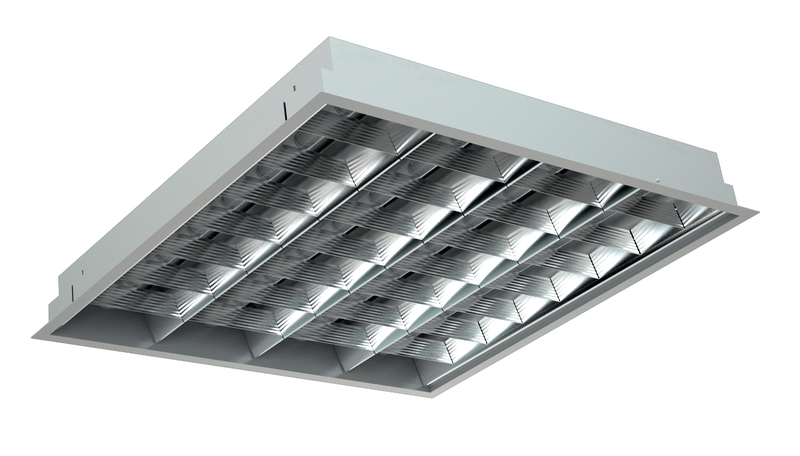 Встраиваемый светодиодный светильник с V-образной отражающей решеткой для офисных помещений. Рассеиватели из ППМА, устанавливаемые на линейные светодиодные модули, обеспечивают световой комфорт.
