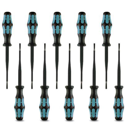 Шлицевая отвертка с тонким изоляционным слоем, интегрированным в рабочий конец, размер: 0,8x4,0x100 мм, двухкомпонентная рукоятка, с защитой от перекатывания, 10 штк.