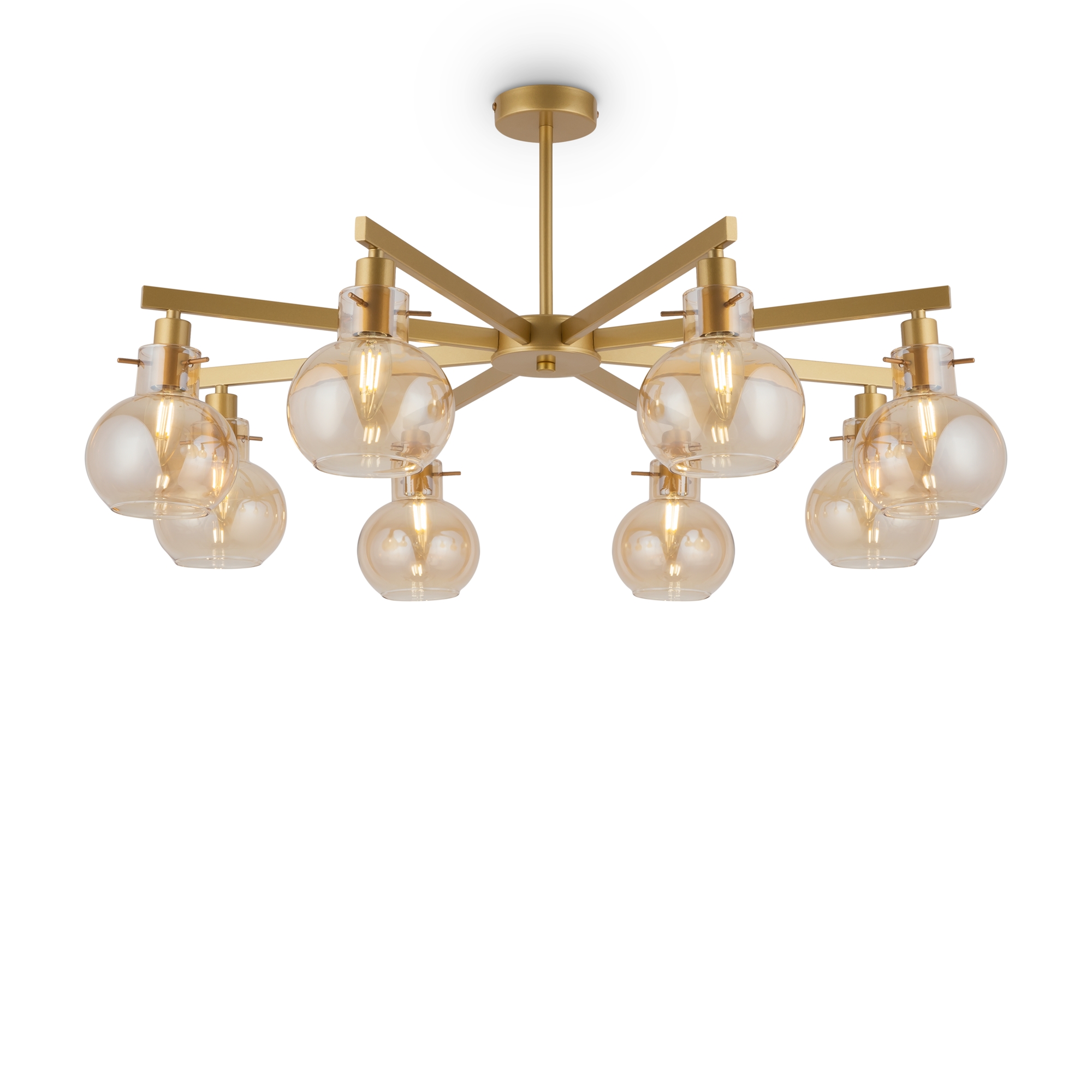 Строгая геометрия арматуры – актуальный тренд в дизайне серии Circle. Металл окрашен в золотой оттенок, а полупрозрачные стеклянные плафоны гальванизированы в цвет шампань. Их округлая форма смягчает подчеркнуто геометричный силуэт арматуры. Источники света направлены вниз и дают яркое освещение, предназначенное для гостиных, кухонь и спален. Серию составляют две потолочных люстры на 6 и 8 плафонов и бра. С их помощью вы сможете организовать комплексную подсветку интерьеров в стиле минимализм, сканди, техно.
