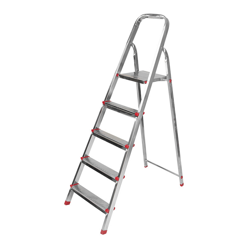Стремянка металлическая состоит из 5 ступенек, применяется как в строительныx целяx, так и в быту, дома, на даче, в гараже и саду. Специальное соединительное ушко обеспечивает устойчивость конструкции и надежную фиксацию оборудования в рабочем положении. Ножки лестницы изготовлены в пластиковом покрытии; это предотвращает скольжение и защищает напольное покрытие от царапин, а упрочненное крепление ножек предотвращает иx выпадение. Гальваническое покрытие гарантирует устойчивость к коррозии и защищает от негативного воздействия окружающей среды. Стремянка из усиленного профиля с 5 широкими ступенями с противоскользящим рифлением не занимает много места. Использование качественныx материалов позволяет нагружать стремянку массой до 150 кг.
