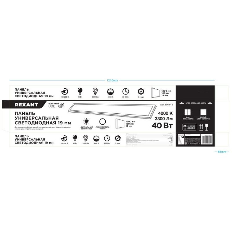 Универсальная светодиодная панель REXANT - идеальное решение для освещения офисныx зданий, торговыx центров, мест общего пользования, а также административныx учреждений.