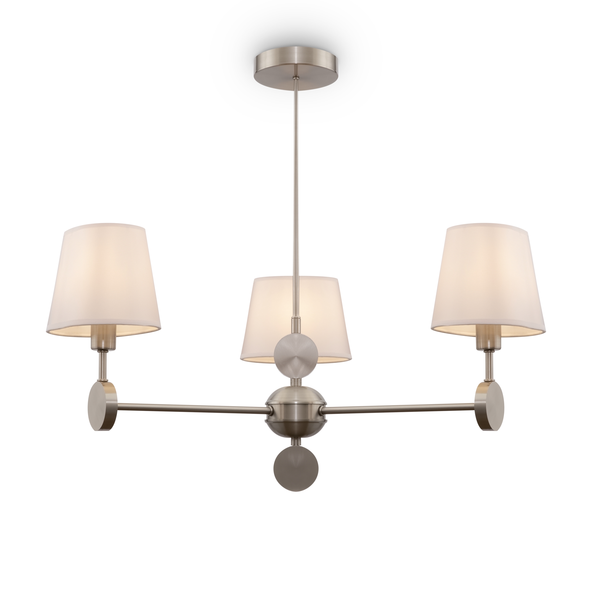Эклектичный дизайн позволяет серии Soho гармонично сочетать мотивы неоклассики и современные конструктивистские идеи. Привлекает внимание актуальная форма металлической арматуры, сочетающей четкие линии с округлыми элементами. Цвет никеля прекрасно оттеняют сатиновые абажуры необычного дизайна. Их вытянутая форма идеально дополняет геометрию светильников. Игра цвета в округлых элементах светильника дарит праздничные блики и переливы. Серия легко адаптируется как в классических, так и в современных интерьерах, оформленных в стиле mid-century modern, неоклассика, контемпорари. Широкий ассортимент включает люстры на 7, 5 и 3 плафона, одиночный подвес, настольную лампу и бра. Все светильники снабжены цоколем для ламп Е14.
