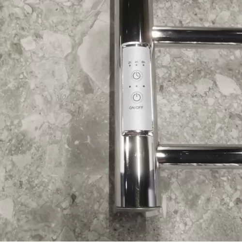 Полотенцесушитель Маргроид Вид 10 500х800 СНШ (таймер справа) — классическая конструкция электрическом исполнении. Изделие укомплектовано нагревательным элементом и таймером включения/выключения с многоступенчатой регулировкой температуры нагрева. Устройство также указывает текущее время и температуру.