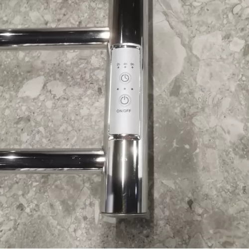 Полотенцесушитель Маргроид Вид 10 500х800 СНШ (таймер справа) — классическая конструкция электрическом исполнении. Изделие укомплектовано нагревательным элементом и таймером включения/выключения с многоступенчатой регулировкой температуры нагрева. Устройство также указывает текущее время и температуру.