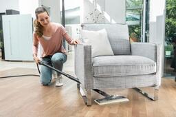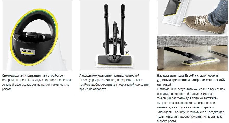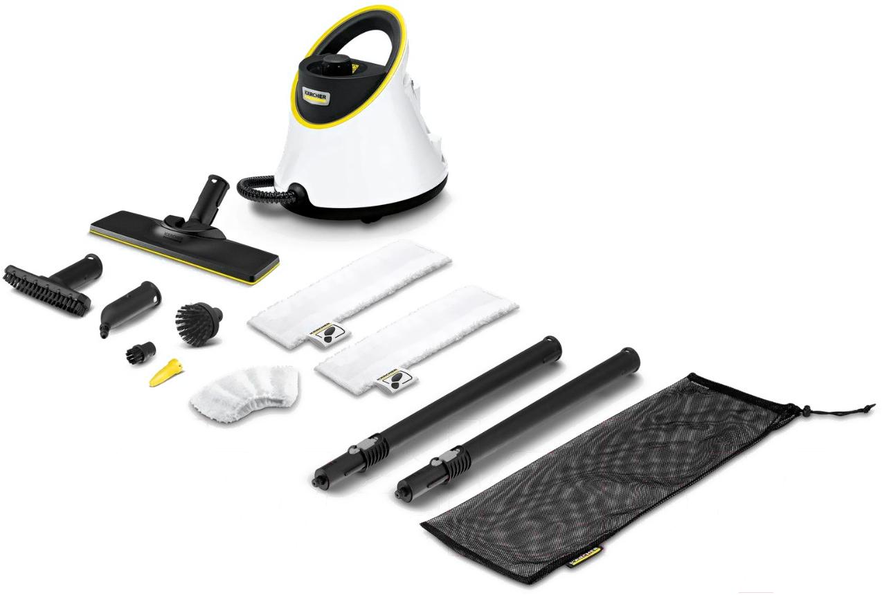 Комплектациякруглая щетка (малая и большая), ручная насадка, точечное сопло, мощное сопло, удлинительная трубка, насадка из микрофибры (для пола, 2 шт.), салфетка из микрофибры (2 шт.), сумка для аксессуаров, обтяжка (из микрофибры для ручной насадки), насадка для пола, предохранительный клапан