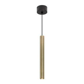 Подвесной светильник. Мощность 9 Вт, св. поток 561 лм, 64 лм/Вт, дневной 4000 K, CRI>90, угол 24°, напряжение питания 230 В. Латунный круглый корпус из алюминия, рассеиватель PC, степень защиты IP20. Размер: диаметр 30 мм, длина 300 мм, размер чаши: диаметр 80 мм, высота 40 мм. Монтаж подвесной, длина подвеса 1500 мм. Драйвер 28-42 В, 200 мА, пульсация <1%.