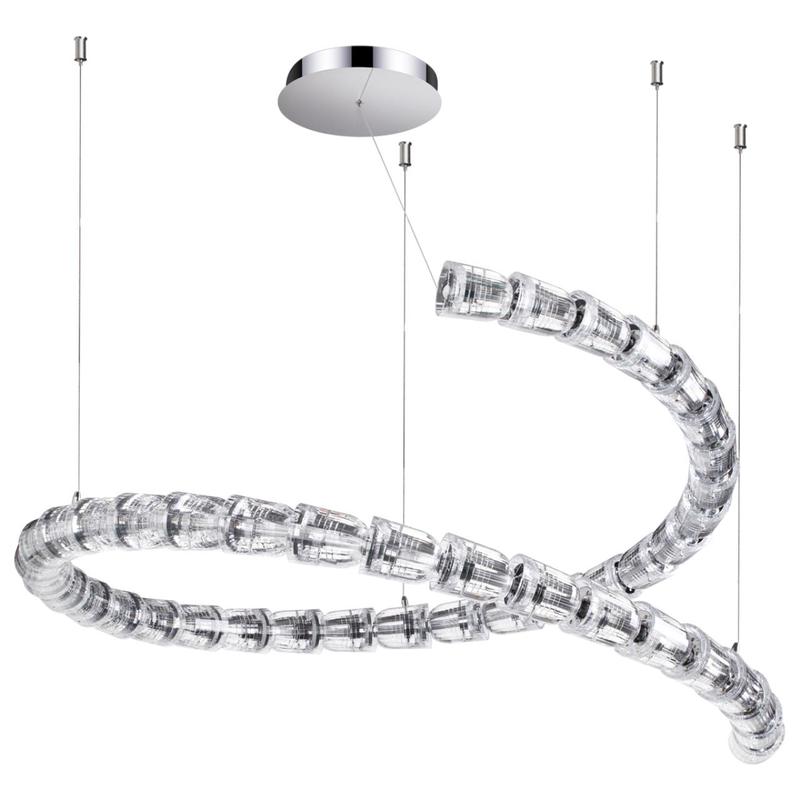 Светодиодная большая люстра диаметром 1 м линии Serpa в виде спирали поражает своей оригинальностью и новизной. Необычные акриловые плафоны, соединяясь в одну линию, создают эффект кожи змеи, и,изящно изгибаясь, образуют легкую и невесомую форму. При помощи тросов можно изменять высоту люстры. Люстра станет великолепным украшением гостевого зала в стиле модерн, хайтек или неоклассика. Материал изделия: арматура: металл, плафон:акрил, декор: металл, Степень защиты: IP20, Класс защиты: 1, Гарантия (месяцы): 30, Дополнительные параметры: , Способ крепления: крепление на планке