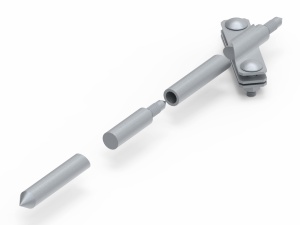 Безмуфтовой комплект модульно-штырьевого заземления L-3000, диаметр D16, для организации заземления токоотводов системы молниезащиты/оборудования. Материал - горячеоцинкованная сталь.