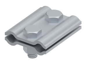 Соединитель для параллельного соединения прутков 6-10 мм, с двумя болтами M8х20. Материал - горячеоцинкованная сталь.