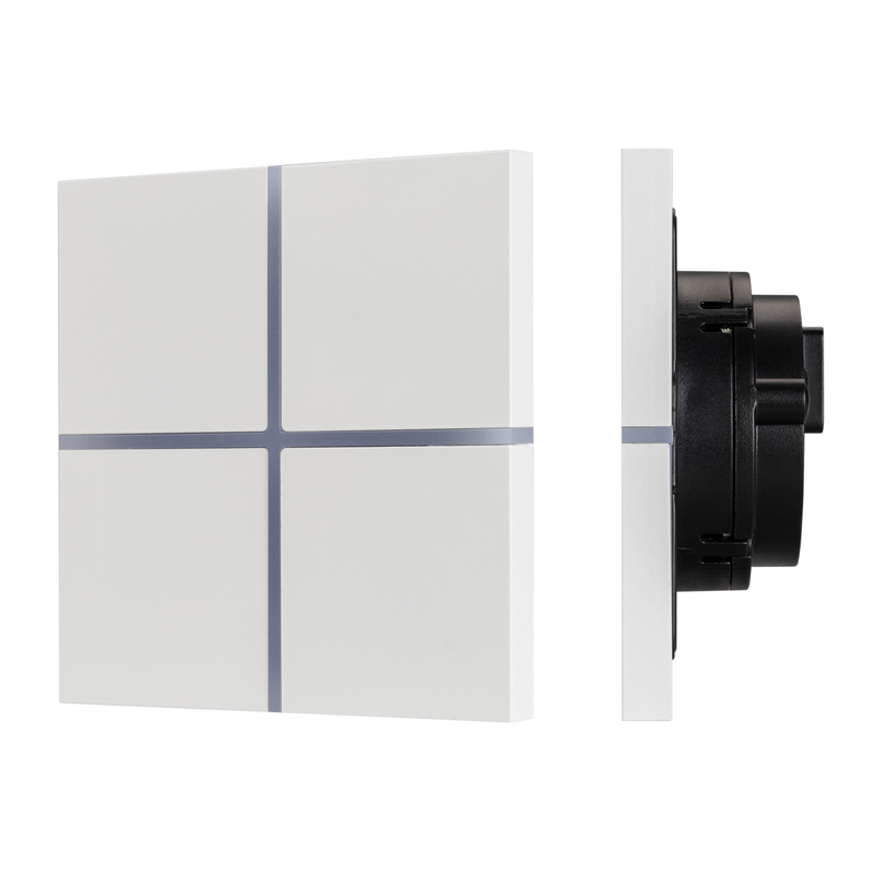 Универсальная многофункциональная встраиваемая настенная сенсорная панель для систем KNX. 4 сенсорные клавиши. Безрамочный корпус, материал - алюминий, отклик вибрацией, светодиодная индикация. Цвет корпуса - белый. Питание от шины KNX DC 21-30V. Габариты 86x86x33 мм.