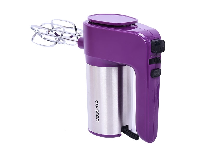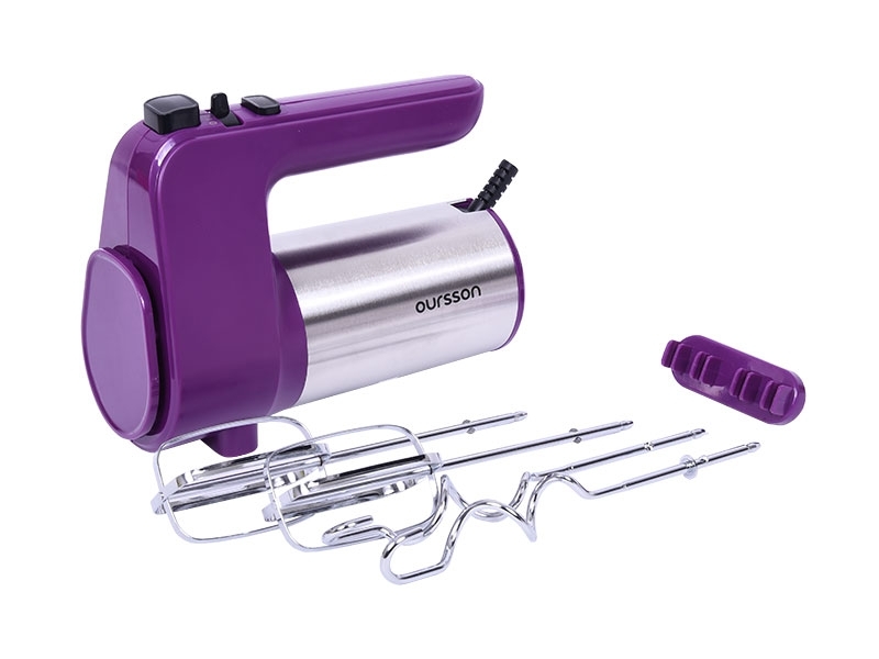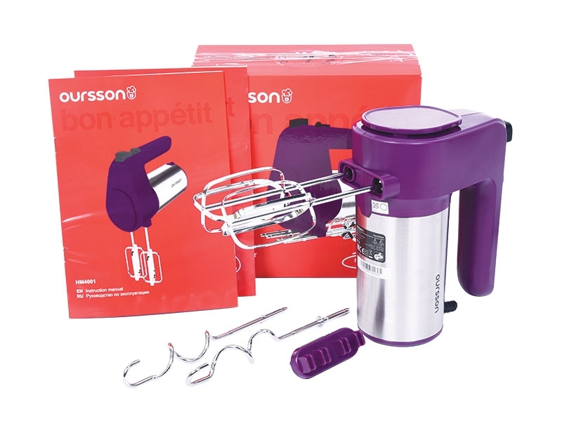 Миксер Oursson HM4001 мощностью 400Вт с регулируемыми 6 скоростями и набором насадок, состоящих из венчиков и крюков для смешивания теста, используется на домашней кухне для взбивания или перемешивания различных продуктов. С его помощью можно быстро взбить яичные белки или сливки, а также приготовить тесто для пирогов. Для быстрого взбивания ингредиентов удобно воспользоваться турбо-режимом и всего за несколько секунд получить продукт однородной консистенции.