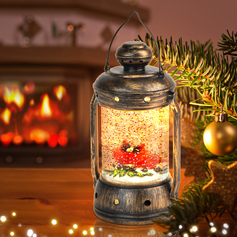 Новогодний светодиодный светильник ЭРА ENGDS-12 Красный кардинал высотой 18 см (арт. Б0051944) создаст у Вас дома праздничную атмосферу. Светильник-фонарик выполнен из ПВХ и окрашен под медь, внутри стекла расположены блестки, создающие эффект падающего снега. Внутри фонаря находятся фигурки двух красных кардиналов, они подсвечиваются 1 светодиодной лампочкой сверху. Декоративный светильник работает от 3 батареек АА, степень защиты IP20 (рекомендуется использовать в помещениях), автоматическое отключение через 6 часов. Он станет прекрасным украшением кухни, гостиной, а еще его можно использовать в спальне как ночник. Настольный винтажный фонарь - это необычный подарок на Новый год или Рождество, который понравится взрослым и детям. Новогодний декор для дома всегда поднимает настроение.