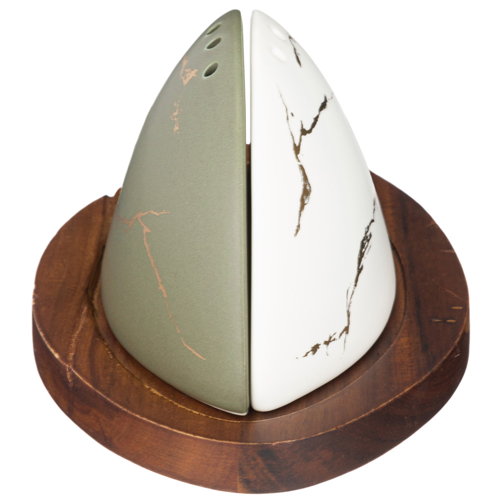 НАБОР ДЛЯ СПЕЦИЙ 2 ПР. НА ДЕРЕВЯННОЙ ПОДСТАВКЕ КОЛЛЕКЦИЯ "ЗОЛОТОЙ МРАМОР" ЦВЕТ: WHITE & GRAY 412-181