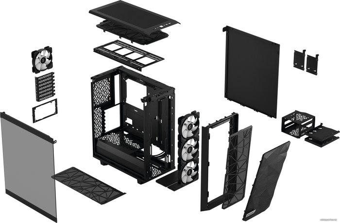 • Подсветка комплектных вентиляторов многоцветная (RGB)