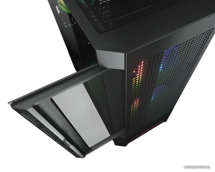 Расположение вентиляторовспереди: 2 x 140 мм или 2 x 120 ммсверху: 2 x 140 мм или 2 x 120 ммсзади: 1 x 140 мм или 1 x 120 ммПредустановленыСпереди: 2 х 140мм ARGB вентилятор без PWM, 1000 об/минСзади:1 х 120 мм ARGB вентилятор без PWM, 1000 об/мин