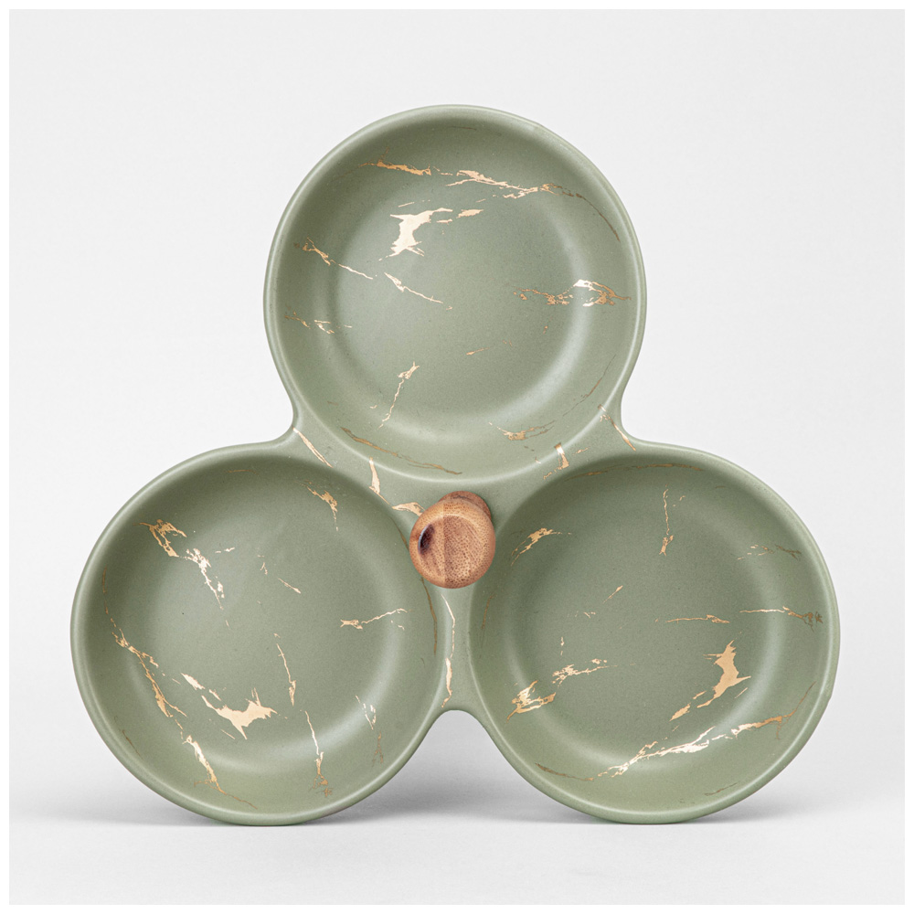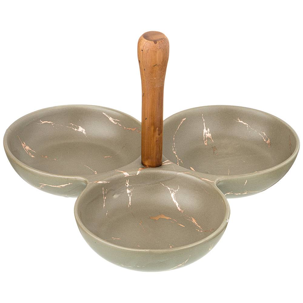 МЕНАЖНИЦА С ДЕРЕВЯННОЙ РУЧКОЙ КОЛЛЕКЦИЯ "ЗОЛОТОЙ МРАМОР" ЦВЕТ: GRAY 23,5*23,5*16,5 СМ 412-135