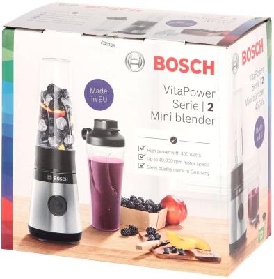 - Прочие свойства и особенности Блендер Bosch MMB2111S станет достойным ассистентом тех, кто не мыслит свою жизнь без ежедневного употребления витаминных коктейлей. Потребовалось восполнить запас минералов и микроэлементов? Наполните основную чашу прибора любимыми фруктами и овощами – благодаря увеличенной до 40000 об/мин скорости вращения он справится с их измельчением буквально в мгновение ока. Выполненная с использованием пластика емкость не способна к выделению небезопасных соединений и воздействию на пищевые характеристики ингредиентов. Особенностью блендера Bosch MMB2111S является комплект из дорожной бутылки, используя которую вы насладитесь вкусом полезных смузи в любом месте. Чтобы обеспечить устойчивую фиксацию устройства на необходимой поверхности, производитель позаботился о наличии прочных ножек с антискользящим покрытием. Доверить очистку съемных элементов вы сможете посудомоечной машине.
