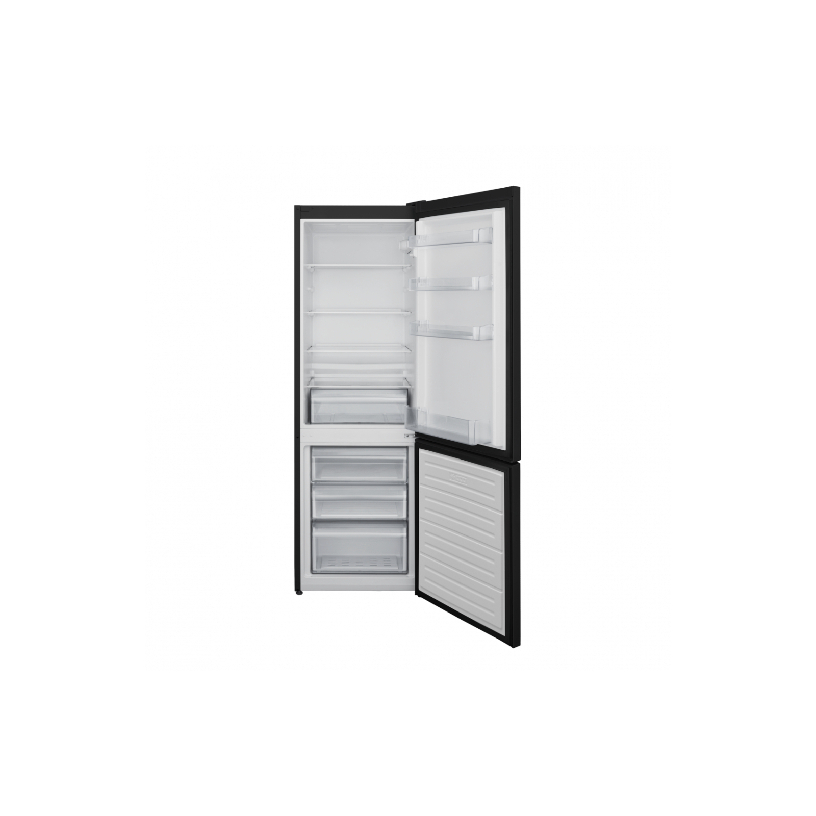 Комбінований холодильник Heinner HC-V268BKE++, Клас енергоспоживання: E, Система охолодження Less Frost, Загальний об’єм: 268 л, Об’єм холодильної камери: 184 л, Об’єм морозильника: 84 л, Механічне керування з регульованим термостатом, світлодіодне підсвічування, функція «Суперзаморожування», 3 скла холодильної камери полиці, 3 шухляди для заморожування, шухляда для хрустких страв, лоток для яєць, лоток для кубиків льоду, потужність заморожування: 3,9 кг/24 год. Розміри (ШxГxВ): 54 x 59,5 x 170 см, чорний із сріблястою смужкою на ручці.