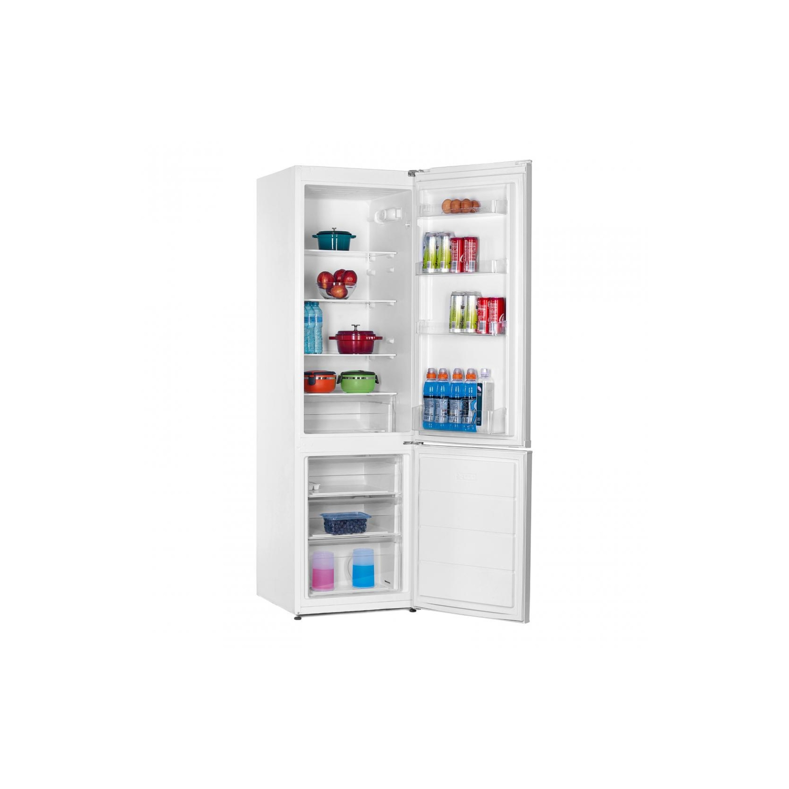 Холодильник Heinner HC-V286F+, Клас енергоспоживання: F, Система охолодження Less Frost, Загальна місткість: 288 л, Місткість холодильника: 204 л, Місткість морозильної камери: 84 л, Механічне керування з регульованим термостатом, Світло, з 3 скляними полицями , Відділення для фруктів та овочів, 3 морозильних ящики, Дверцята з можливістю перенавішування, Лоток для яєць, Форма для кубиків льоду, Потужність заморожування: 3,9 кг/24 год, Розміри (ШхГхВ): 54 x 80,5 см, Білий колір з хромованим декором на ручці.