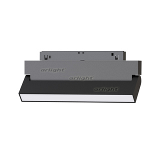Светильник для магнитных треков MAG-ORIENT шириной 26 мм с управлением DALI. Мощность 12 Вт, св. поток 750 лм, 60 лм/Вт, теплый 3000 K, CRI>90, угол 80°, напряжение питания 48 В. Черный прямоугольный корпус из металл, экран поликарбонат, степень защиты IP20. Размер: длина 231 мм, ширина 23 мм, высота 107 мм. Монтаж на трек MAG-ORIENT. Пульсация <1%.