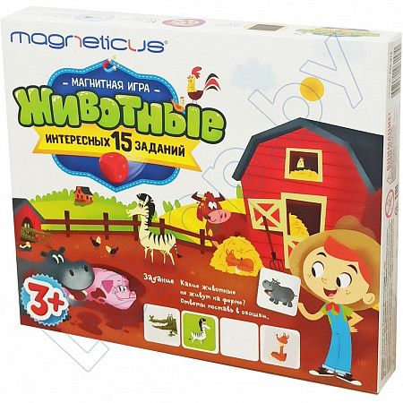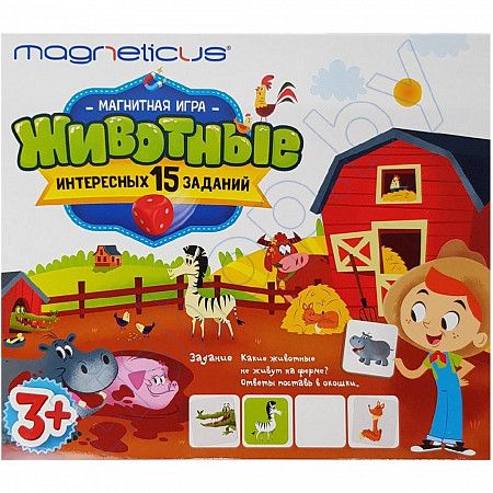 - Особенности Комплект: игровое поле, 27 магнитных элементов с животными, 15 заданий, игра-ходилка.