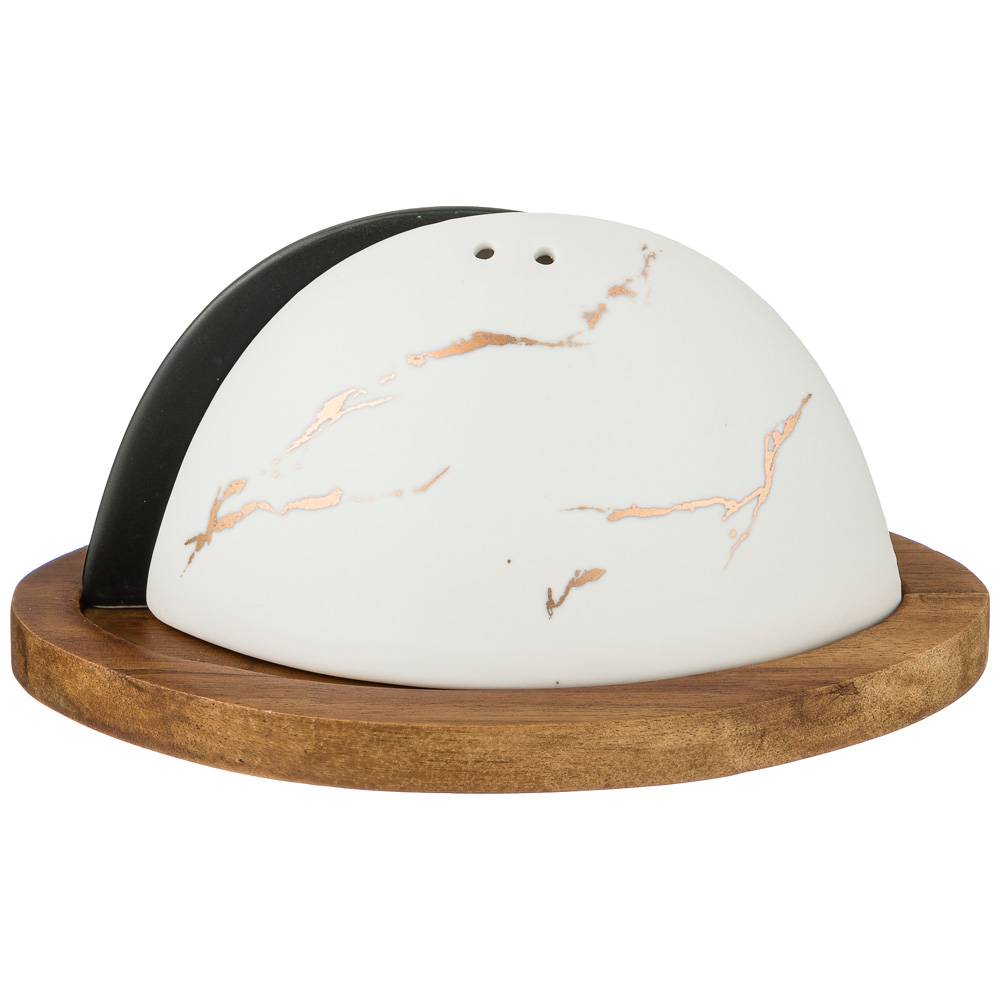 НАБОР ДЛЯ СПЕЦИЙ 2 ПР. НА ДЕРЕВЯННОЙ ПОДСТАВКЕ КОЛЛЕКЦИЯ "ЗОЛОТОЙ МРАМОР" ЦВЕТ: BLACK & WHITE 412-159