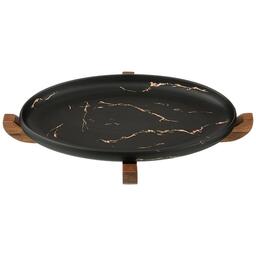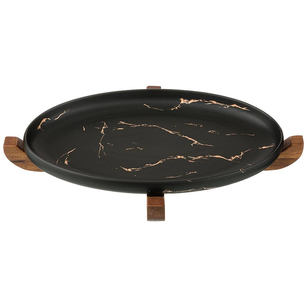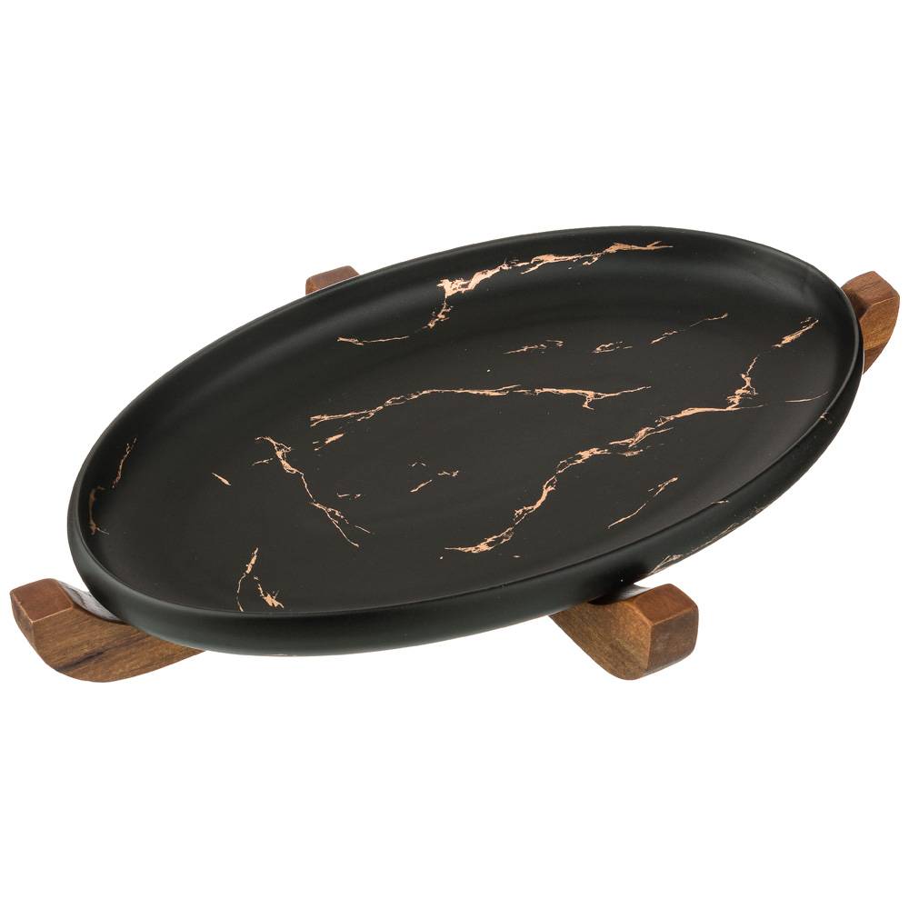 БЛЮДО ДЛЯ СЕРВИРОВКИ НА ДЕРЕВЯННОЙ ПОДСТАВКЕ КОЛЛЕКЦИЯ "ЗОЛОТОЙ МРАМОР" ЦВЕТ: BLACK 30,8*18,7*3 СМ 412-127