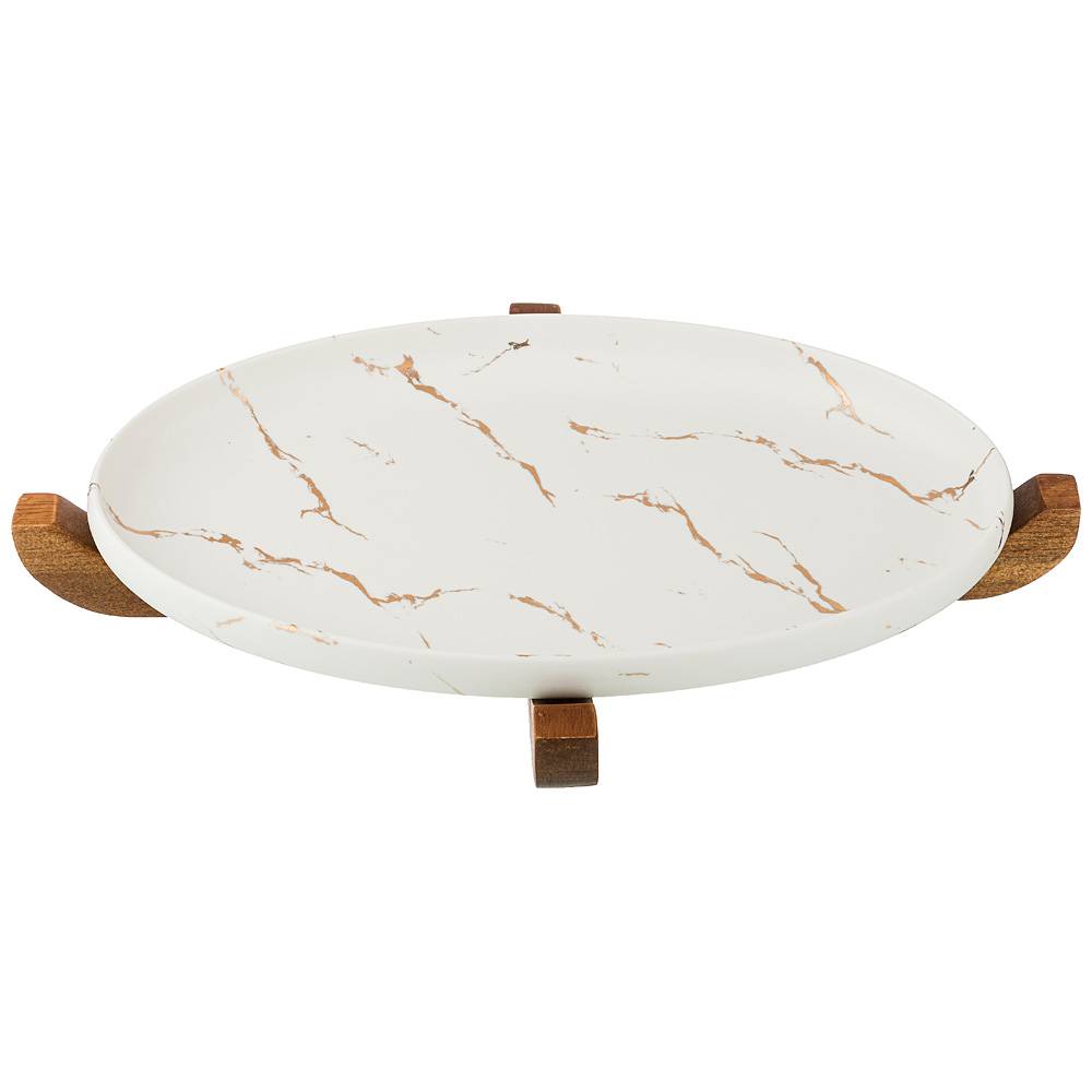 БЛЮДО ДЛЯ СЕРВИРОВКИ НА ДЕРЕВЯННОЙ ПОДСТАВКЕ КОЛЛЕКЦИЯ "ЗОЛОТОЙ МРАМОР" ЦВЕТ: WHITE 30,8*18,7*3 СМ 412-128