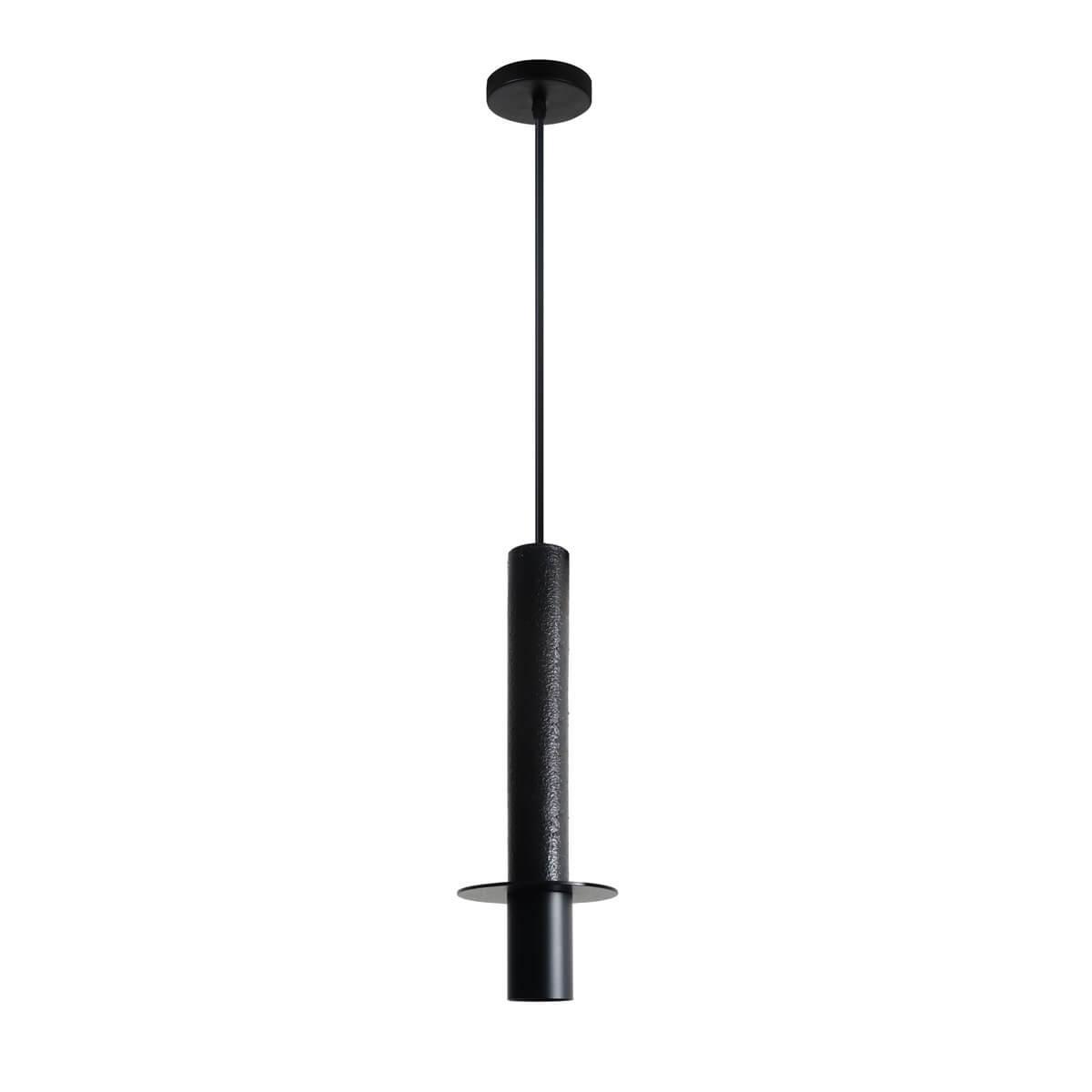 Подвес цилиндрической формы с лампой GU10, полированная вулканическая порода в сочетании с черным цветом каркаса