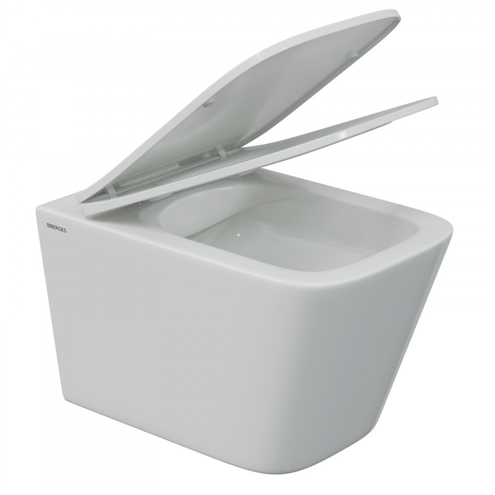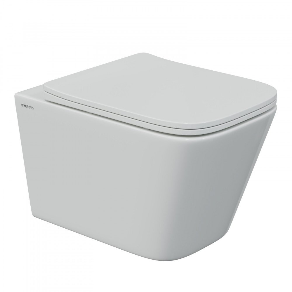 Унитаз подвесной BERGES FLOE S Rimless 51x34 сиденье дюропласт Floe S Slim SO, быстросъемное