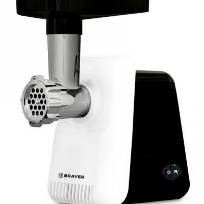 Мясорубка BRAYER BR1600, 1300 Вт, производительность 1,5 кг/мин, металлический шнек, реверс, пластик, белая/черная