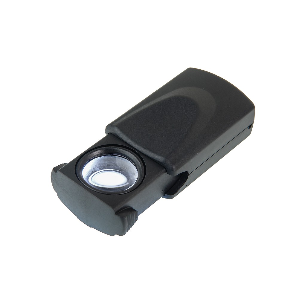 Cкладная лупа Veber с 20-кратной линзой (диаметр 21 мм) и со светодиодной подсветкой. Питание подсветки осуществляется от трёх элементов LR1130 (в комплекте). Корпус лупы и оправа изготовлены из пластика. Изделие работает по принципу «входит-выходит». Светодиодная подсветка автоматически включается при вытягивании оправы из корпуса лупы и автоматически выключается при её складывании. Из-за достаточно большого увеличения, рабочее расстояние т. е. расстояние между линзой и исследуемым объектом, невелико — в пределах 15-20 мм. Для ношения лупы в качестве брелка на её корпусе предусмотрено ушко для крепления. Корпус лупы позволяет нанести изображение на любую из её сторон, поэтому лупу можно использовать как «заготовку» для сувенирной продукции. Лупы Veber предназначены для чтения, рассматривания мелких предметов и деталей, например в филателии, нумизматике, геммологии и пр.