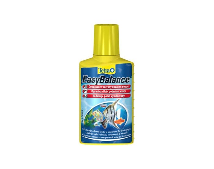 Tetra Easy Balance кондиционер для стабилизации параметров воды. Жидкий кондиционер для стабилизации среды обитания рыб, а также поддержания долгосрочного биологического равновесия в аквариуме - до 6 месяцев. Снижает количество замен аквариумной воды. •стабилизация показателей рН и карбонатной жесткости (КН) воды приводит к минимизации изменений химического состава воды, а также к предотвращению быстрого падения кислотности, которое крайне негативно сказывается на состоянии здоровья рыб •биологическим способом снижает содержание фосфатов и нитратов, уменьшая тем самым рост водорослей •содержащиеся в продукте гранулы уменьшают содержание нитратов, быстро опускаясь на дно и распределяясь по всему аквариуму •наполняет аквариум витаминами, микроэлементами и минералами •при правильной дозировке обеспечивает здоровую среду обитания для Ваших растений и рыб в пресноводном аквариуме на протяжении 6 месяцев. •сокращает число замен воды •создает благоприятные условия для рыб и растений •для всех пресноводных аквариумов