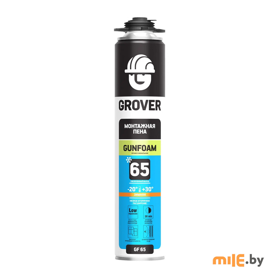 Пена монтажная Grover GF65 профессиональная зимняя - полиуретановая пена, затвердевает под воздействием влажности воздуха. Обладает однородной мелкопористой структурой и превосходной адгезией к большинству типичных строительных материалов.